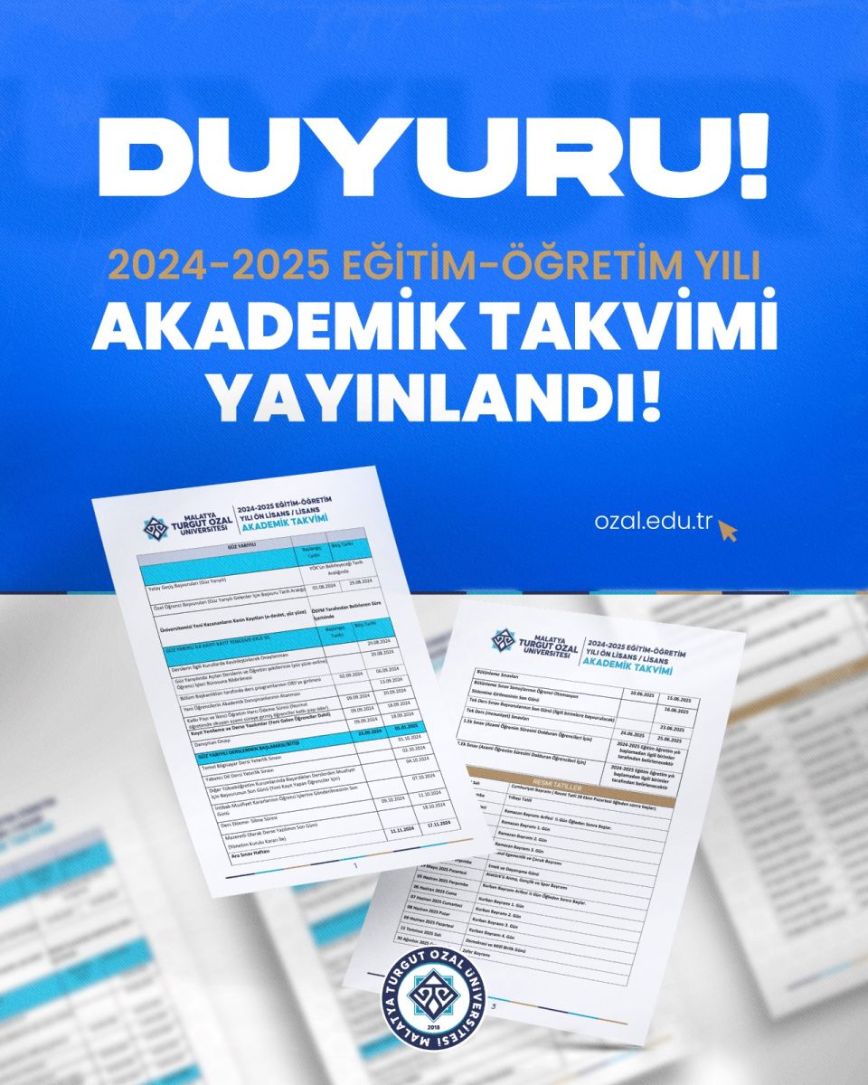 2024-2025 Eğitim Öğretim Yılı Akademik Takvimi Yayınlandı